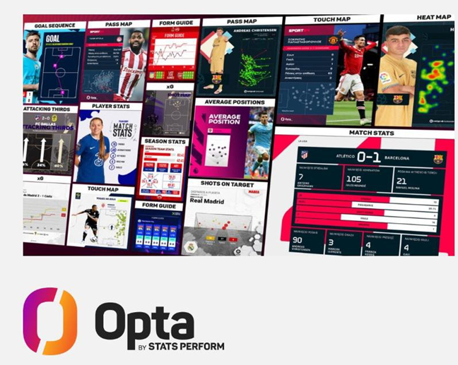 Opta: recoge, examina y clasifica acontecimientos en vivo de una gama de disciplina deportiva. Además, los datos son recolectados independientemente de un país, de las cuales se puede consultar para brindar información en directo.