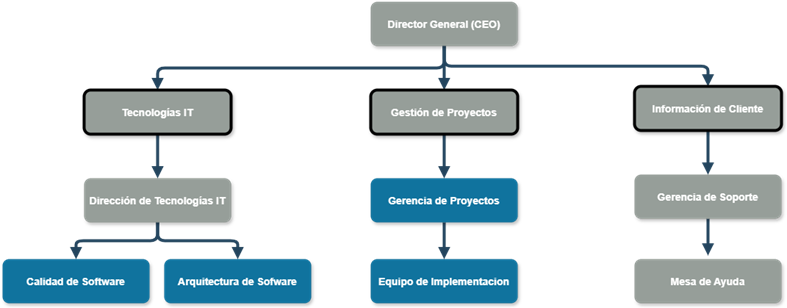 Below is a generic organizational chart of a small or medium-sized software development company, given the nature of the users targeted by the project.