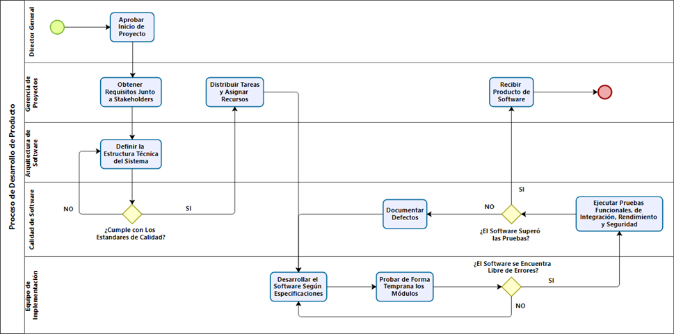 Finally, the Software Quality team performs the tests and evaluates the results to provide feedback to the Implementation Team, if necessary. Otherwise, Project Management receives the product and is responsible for its final release.